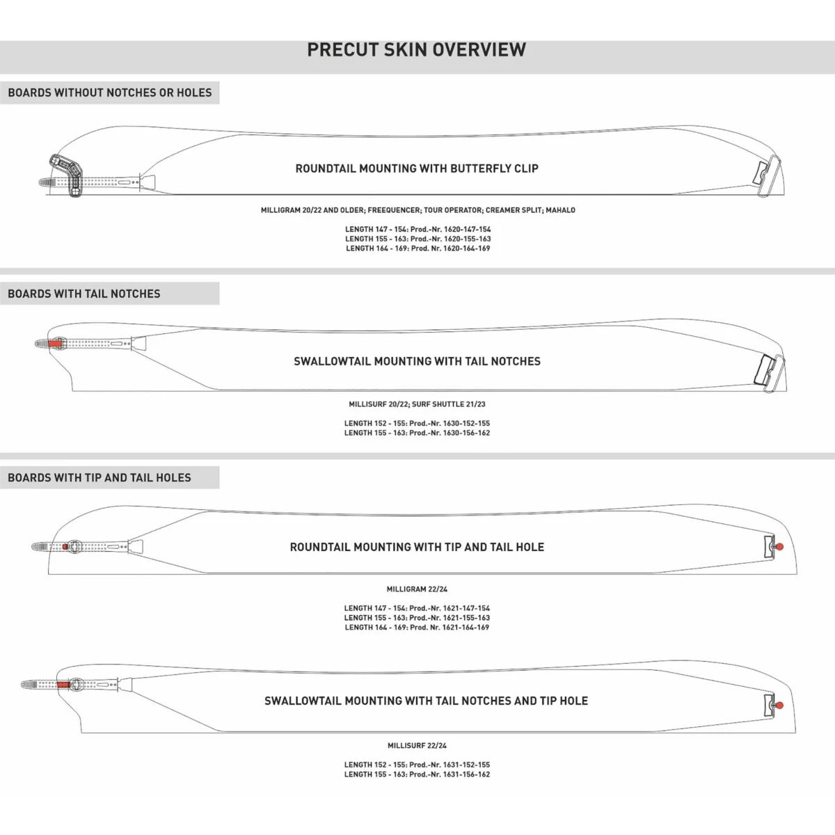 - Precut Hiking Skin Mohair Blend / Swallowtailshape 156 – 162 Compatible: w/ Amplid Models Millisurf 157 – 161 or similar (w/ swallowtail steel hook)