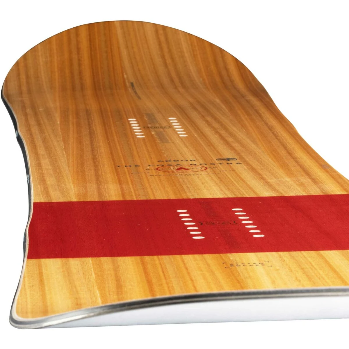 De Arbor Cosa Nostra is één van de meest surfy boards uit onze collectie. De parabolische rocker in combinatie met een enorme poeder neus zorgt voor waanzinnig drijfvermogen en goede wendbaarheid in diepe losse sneeuw. Ondanks zijn looks is de Cosa Nostra niet echt een carver, voor het echte carven heeft Arbor de Clovis. Geschikt voor de meer ervaren rijder die opzoek is naar een waanzinnige uitbreiding naast zijn ‘daily driver’.