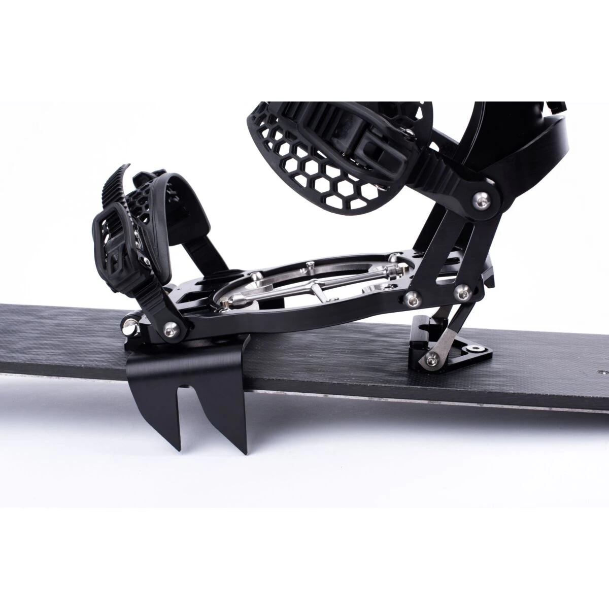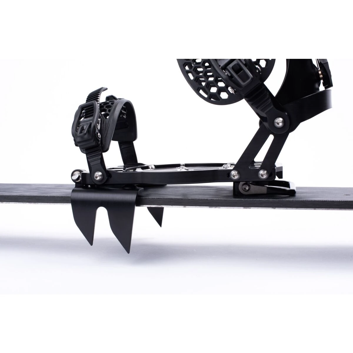 De Enfuse Shift stijgijzers werken gemakkelijk. Til je hiel op en schuif deze in de daarvoor bestemde sleuven. Ze zijn groot genoeg om voldoende grip te hebben, zelfs als de heelrisers in de hoogste stand staan. De crampons passen in elkaar om gemakkelijk in je rugzak te kunnen worden opgeborgen.