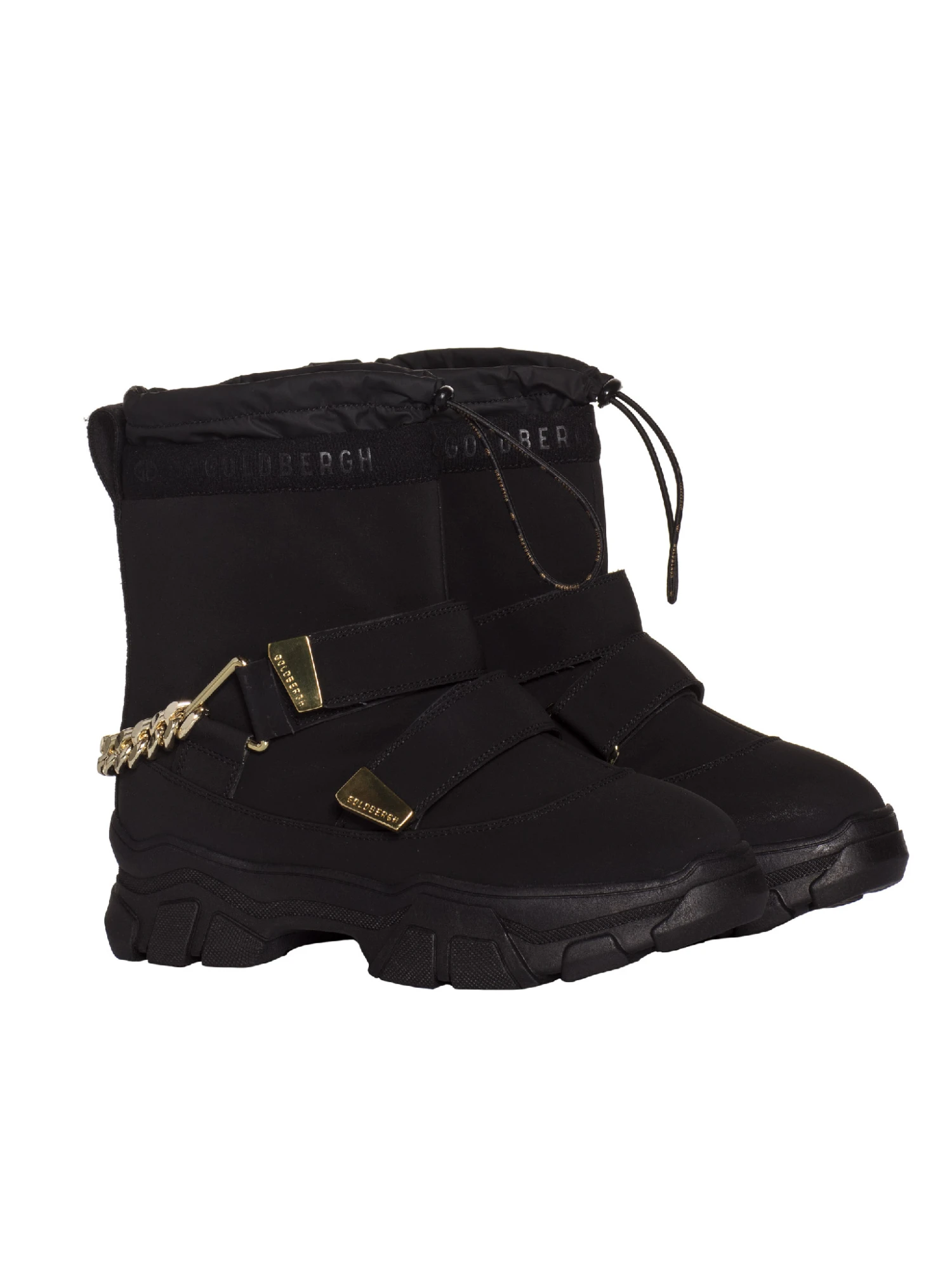 De Goldbergh Posh Snowboot Low zijn waterdichte lage sneeuwlaarzen met een statement goudkleurige metalen ketting aan de achterkant. We kunnen er zoveel over zeggen, maar deze wil je toch? In een woord: Posh!