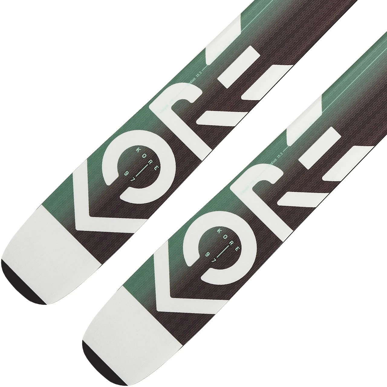 De materiaalmix vermindert het gewicht zonder aan prestaties in te boeten. Daartoe wordt het hightech materiaal grafeen gebruikt in de geribbelde punt en staart. De lichte maar stijve koolstofkern wordt omlijst door een triaxiaal koolstofweefsel, wat de ski stabiel en speels maakt. De nieuwe Top Sheet verhoogt de duurzaamheid van de ski en maakt de KORE 97 W tot wat hij is – een ski voor alle gelegenheden en avontuurlijke freeriders.