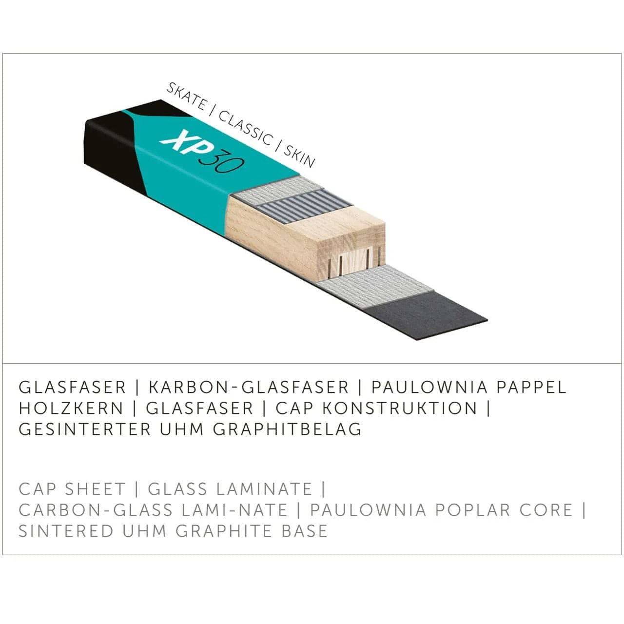 De veelzijdige XP30 Classic skin maakt indruk met comfortabele glij-eigenschappen en aangename rebound dankzij de carbonconstructie. De huidtechnologie maakt een optimale kick mogelijk, zonder waxen, voor energie-efficiënt skiën.