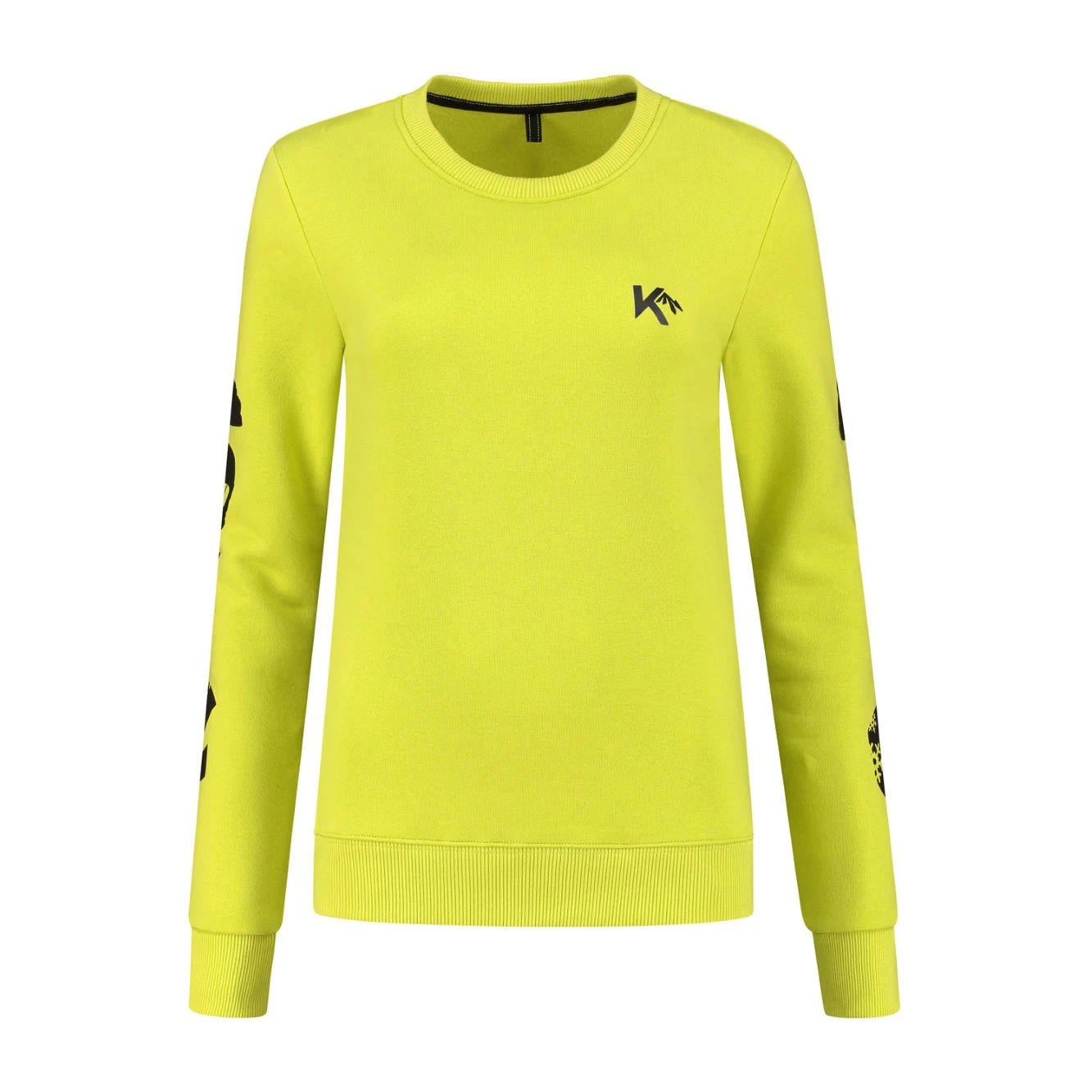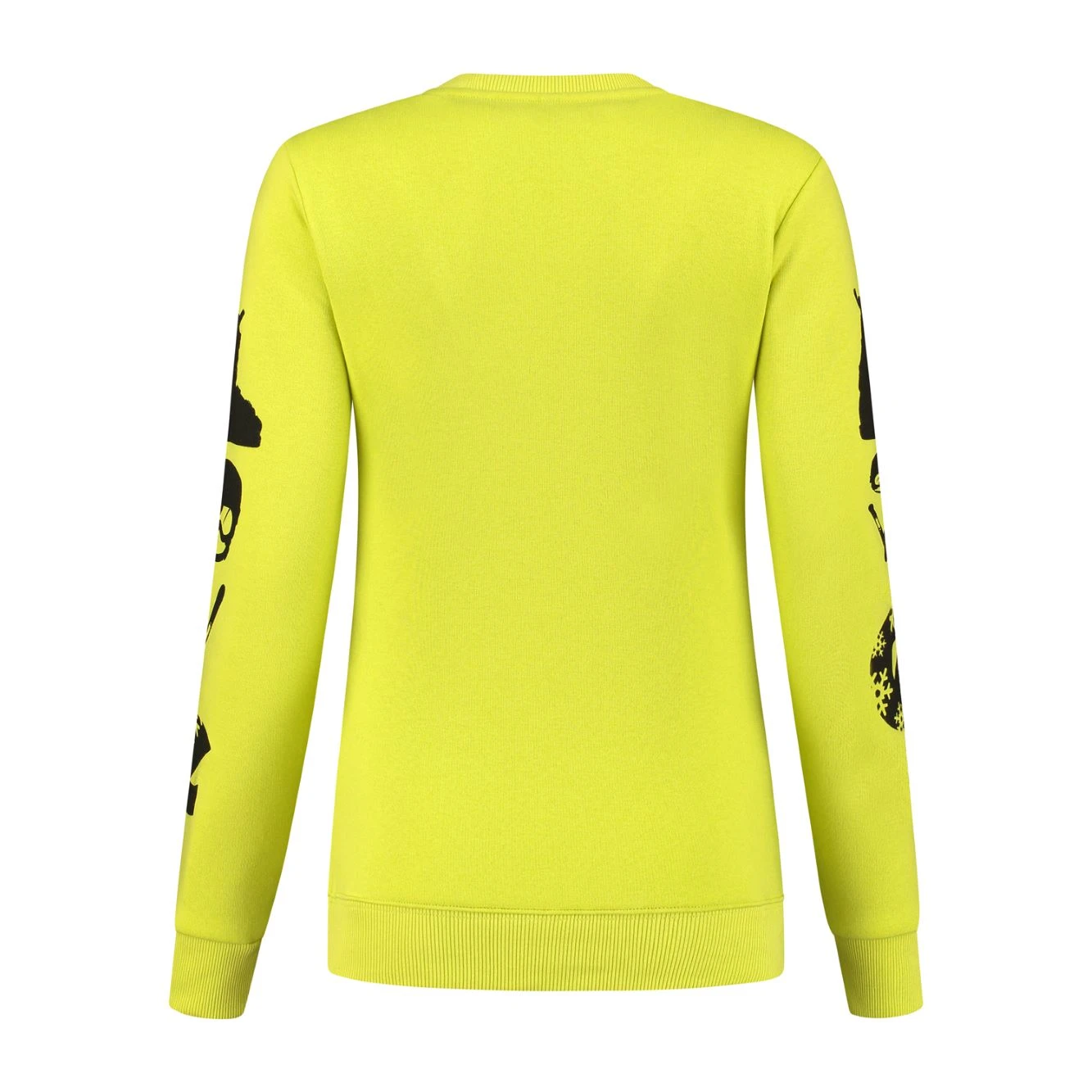 De Kou Sportswear Sweater Love Neogreen is een statement sweater voor dames. Deze comfortabele sweater is bedacht om te dragen voor, tijdens of na wintersportactiviteiten. De basis is een zachte en warme sweater met een flockprint op de mouwen waarin alle onderdelen van de wintersport samen het woord ‘love’ vormen. De neon gele kleur van de sweater maakt deze statement sweater compleet.