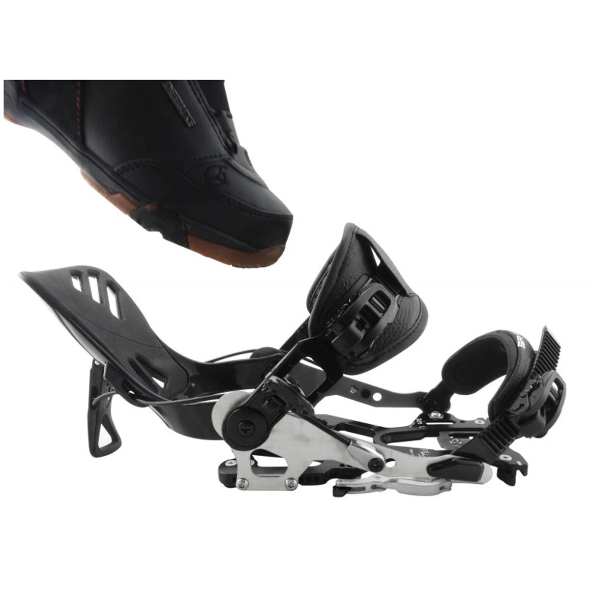 The Plum DARI is a splitboard binding with back entry for riders wishing to find the benefits of this system on their splitboard. This all-mountain binding is quick to get into thanks to the tilting back spoiler. Thanks to the straps you have the possibility to get in or out of the binding the traditional way when the terrain is difficult or during your powder outings.