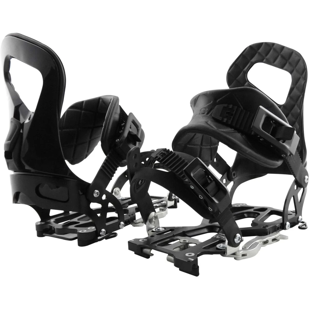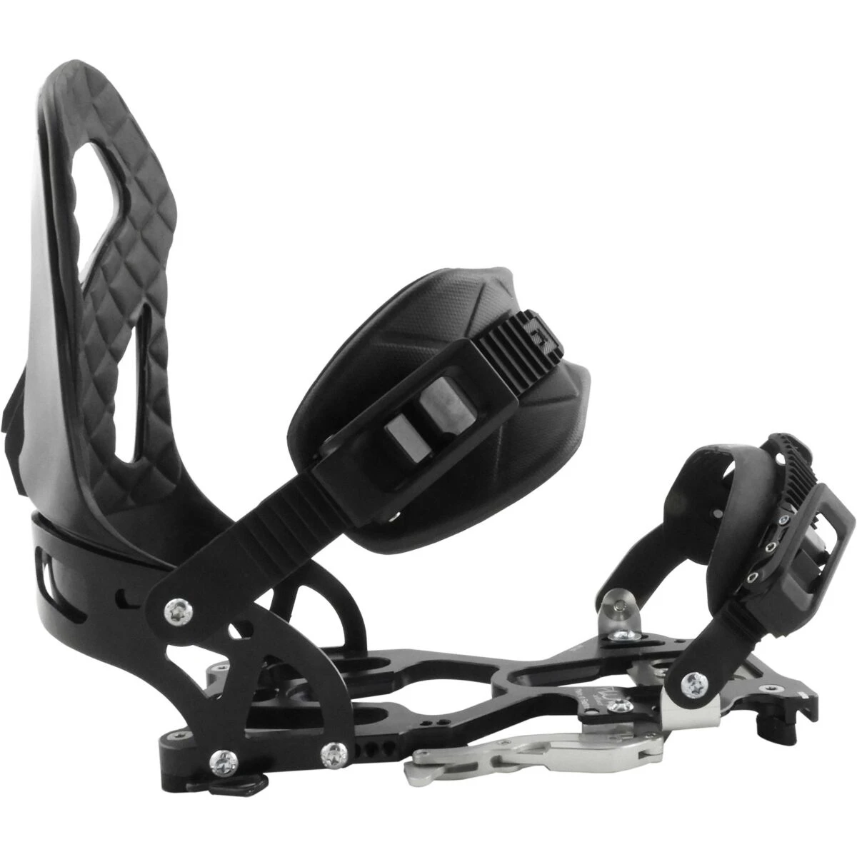 Het Plum Talp system maakt gebruik van 2 slots (beugels) waar je de binding inschuift, vervolgens sluit en zeker je het systeem met de aluminium hendel aan de zijkant van de binding. Met Heel locking system kan je de binding bij de hak vastzetten. Alle Plum binding zijn eenvoudig te monteren op alle splitboards met inserts. Voor splitboards met een channel heb je het Plum I.M.D. Channel systeem nodig.