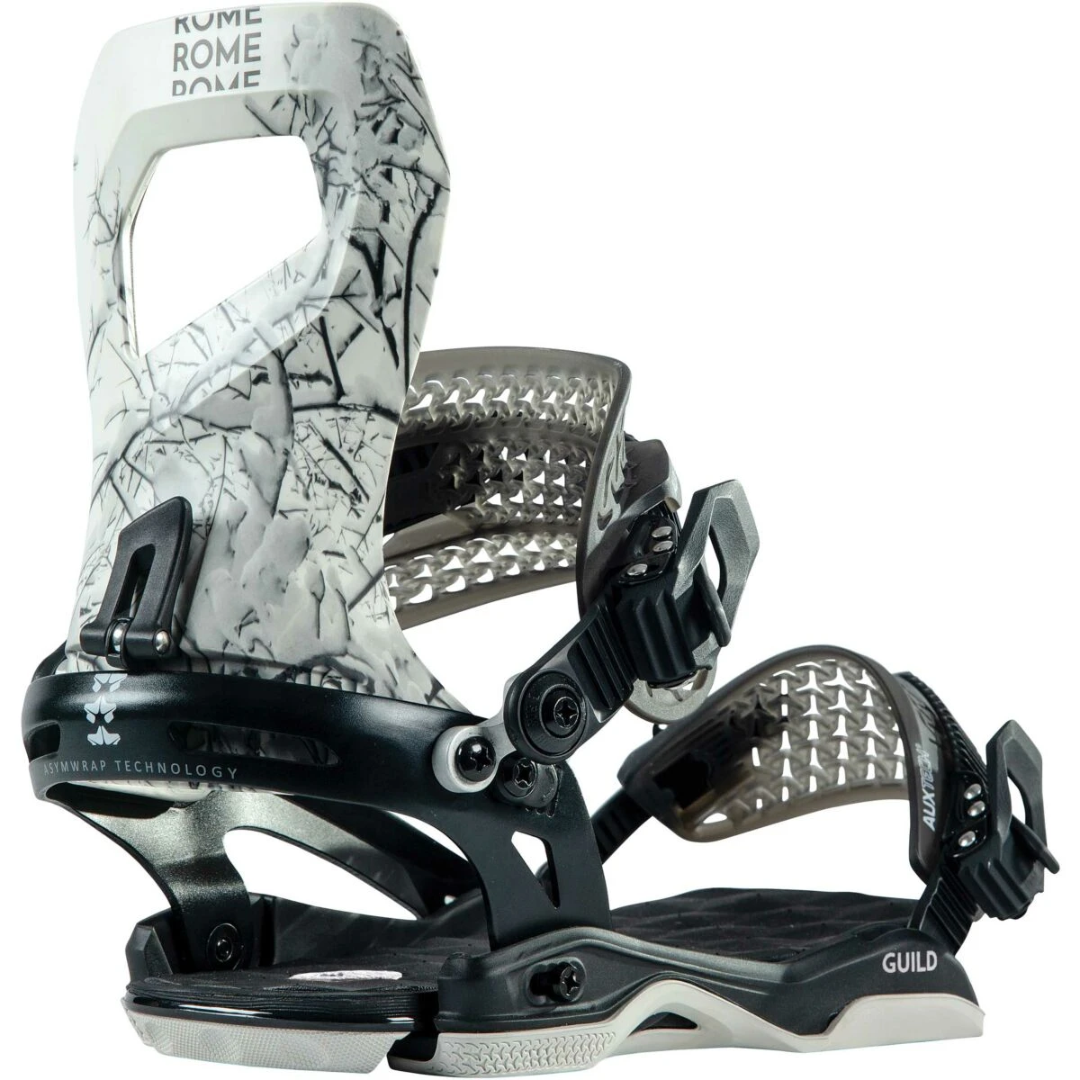 Met de Rome Guild komt veelzijdigheid vanzelf. Het surfy gevoel van de Asym wrap, de goede pasvorm van de UltraLight Ankle Straps met de medium flex highback kun je overal van genieten. Past geweldig op boards als de Artifact. Freestyle minded, All mountain Tweakability.