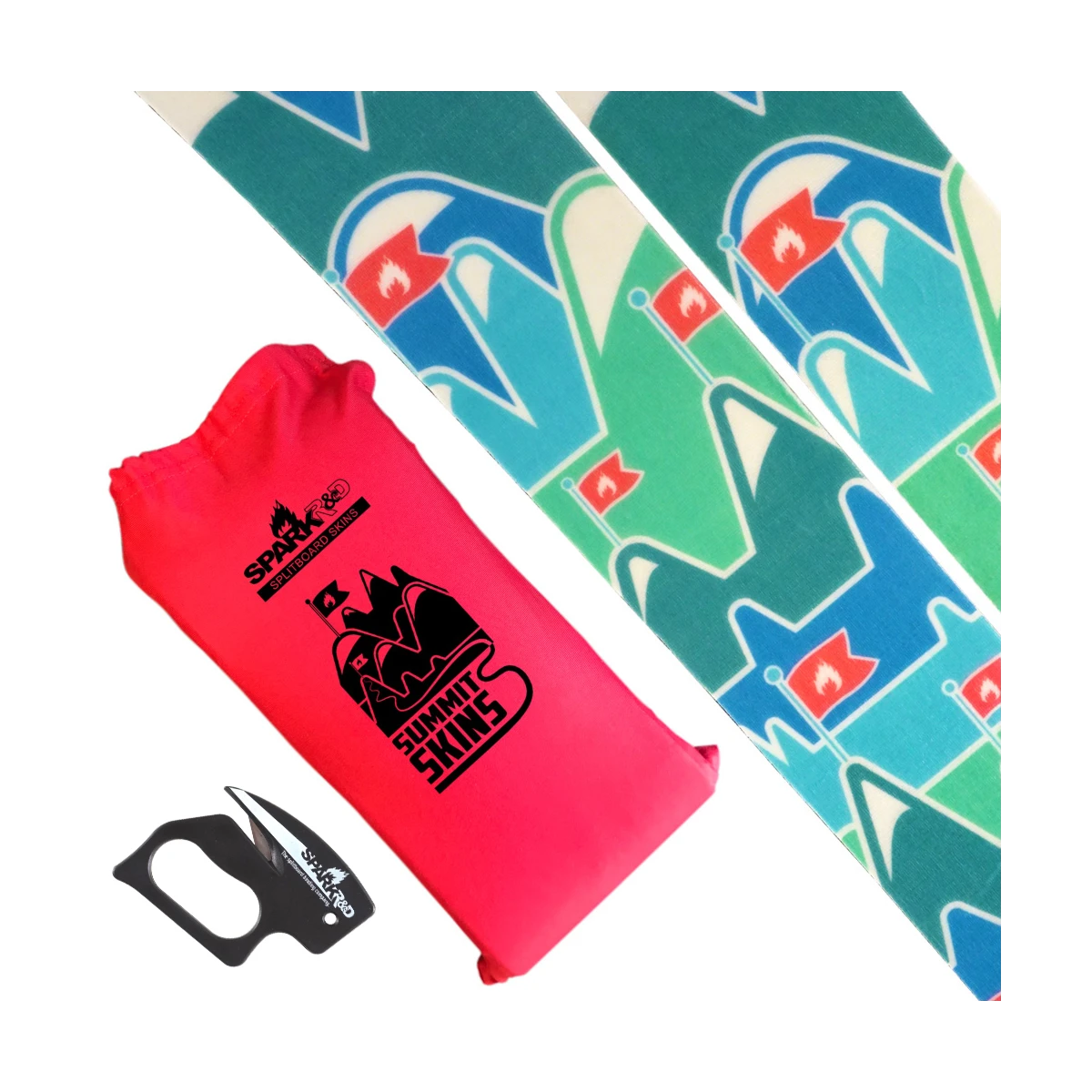 The newly constructed Summit Skins are a full nylon custom design manufactured in the USA. They’re lightweight and feature solid grip with improved glide. The longer-lasting glue is laid down in multiple stripes to be sticky on your board, but not too sticky to pull apart. The new Summit Skins are made for real backcountry touring, not just pristine skin tracks. They’re built to be durable and to keep gripping and gliding their way through anything the skin track brings – deep pow, steep ice, spring slush, extreme cold, dirt, rocks, and roots. Summit Skins feature our newly designed tip and tail clips. These clips work with the ever-changing variety of board shapes on the market. Dual angled hooks accommodate pointy to blunt profiles and everything in between. Extended slots in the tailclip offer boundless adjustability for the perfect combination of position, angle, and tail stretcher tension with your board.
