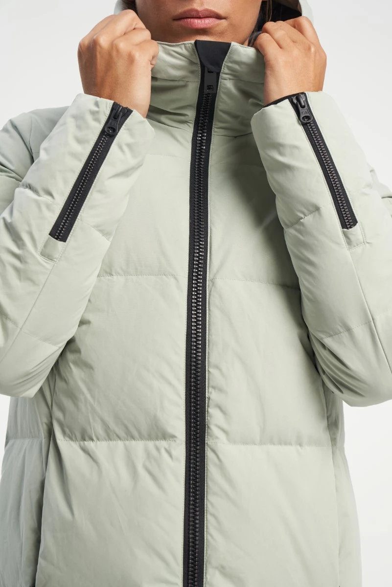 Tenson W Shanna Down Coat Jackets is een stijlvolle lange dons jas met capuchon.