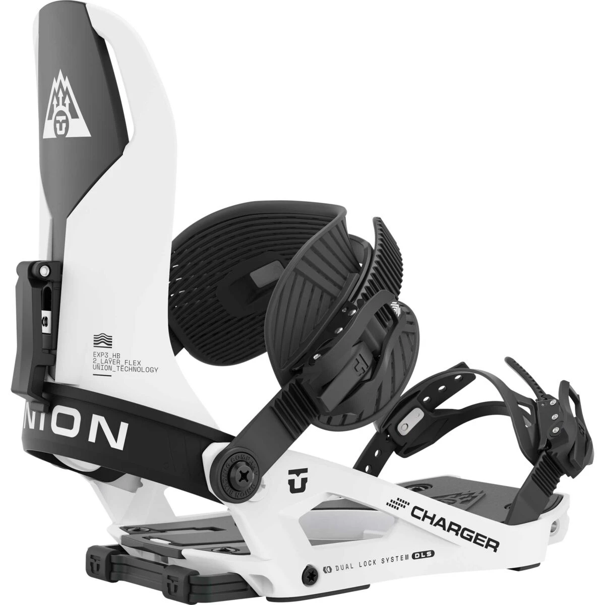 Union Charger’s pinloze dual lock-system zorgt voor een snelle en gemakkelijke overgang van ride- naar tour-mode. Minder tijd in de overgang betekent meer tijd besteed aan het rijden. Lift de hendel in de binding en plaats de binding op de disk in een hoek van 90 graden. Draai vervolgens de baseplate en duw de hendel naar beneden. Dit unieke proces elimineert de pin, werkt sneller met minder speling.